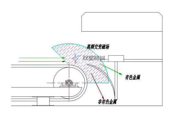 渦電流分選機(jī),又叫渦流分選機(jī)、金屬分選機(jī)等,可從各種金屬破碎混合物料中分選出銅和鋁等非鐵金屬,也可在環(huán)境保護(hù)領(lǐng)域,特別是在非鐵金屬再生行業(yè)推廣應(yīng)用。渦流分選機(jī)利用導(dǎo)體在高頻交變磁場(chǎng)中產(chǎn)生感應(yīng)電流的原理進(jìn)行設(shè)計(jì)的。工作時(shí),在分選磁輥表面產(chǎn)生高頻交變的磁場(chǎng),當(dāng)有導(dǎo)電性的有色金屬經(jīng)過磁場(chǎng)時(shí),會(huì)在有色金屬內(nèi)感應(yīng)出渦電流,此渦電流本身會(huì)產(chǎn)生與原磁場(chǎng)方向相反的磁場(chǎng),有色金屬(如銅、鋁等)則會(huì)因?yàn)榇艌?chǎng)的排斥力作用而沿其運(yùn)輸方向向前飛躍,實(shí)現(xiàn)與其他非導(dǎo)體物或非金屬類物質(zhì)的分離,達(dá)到分選的目的。