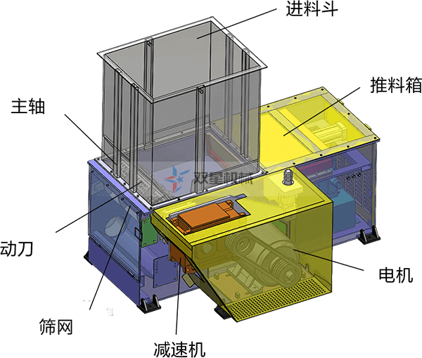 單軸撕碎機(jī),主要由刀片主軸、定刀、承載箱體、箱體支架、進(jìn)料系統(tǒng)、液壓推料系統(tǒng)、動(dòng)力系統(tǒng)、電器控制系統(tǒng)組成。設(shè)備主要用于撕碎木材、橡膠、塑料、紙等廢料、機(jī)頭料。